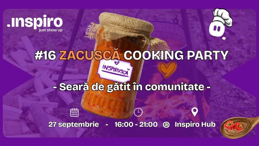 Pune-ți telefonul deoparte și vino la Zacusca Cooking Party - un eveniment ce împletește tradiția de gătire a bunicilor cu umorul și creativitatea tinerelor generații.